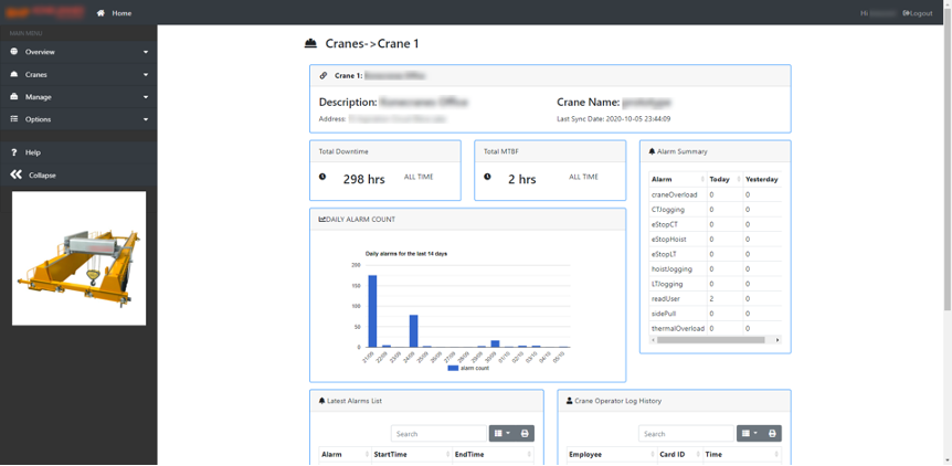 The asset owners can monitor the daily operation of their cranes, which gives them insight as to what is happening to their equipment in almost real-time. Equipped with new insights, the asset owners can swiftly react to problems as they arise, or even before they become a real issue, because the information is already available without them even leaving the comfort of their office or home. This saves them valuable time and money that can be redirected to where it is needed the most.