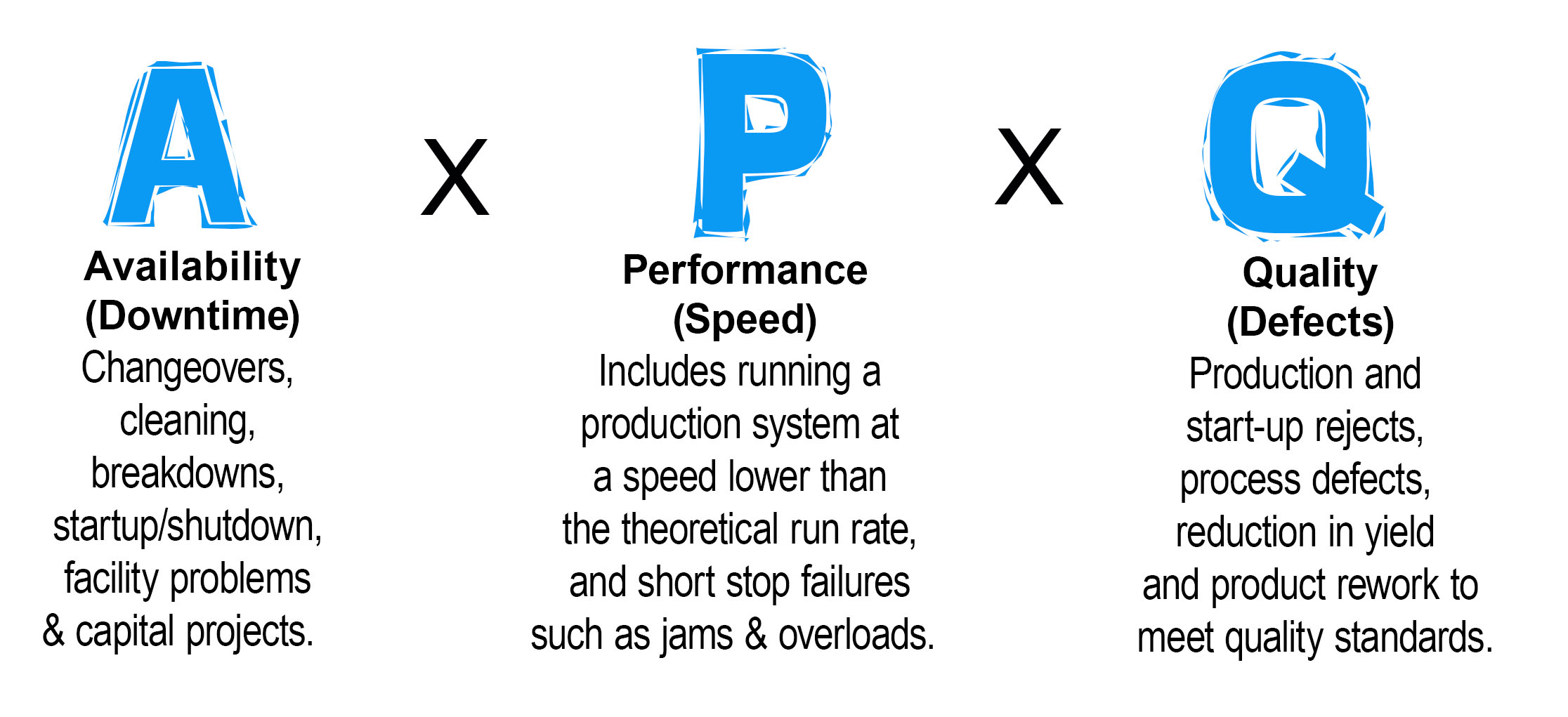 When these losses are multiplied (OEE = A x P x Q), the effects can be quite dramatic to the overall effectiveness of a manufacturing process and greatly affect the profitability of a business.
